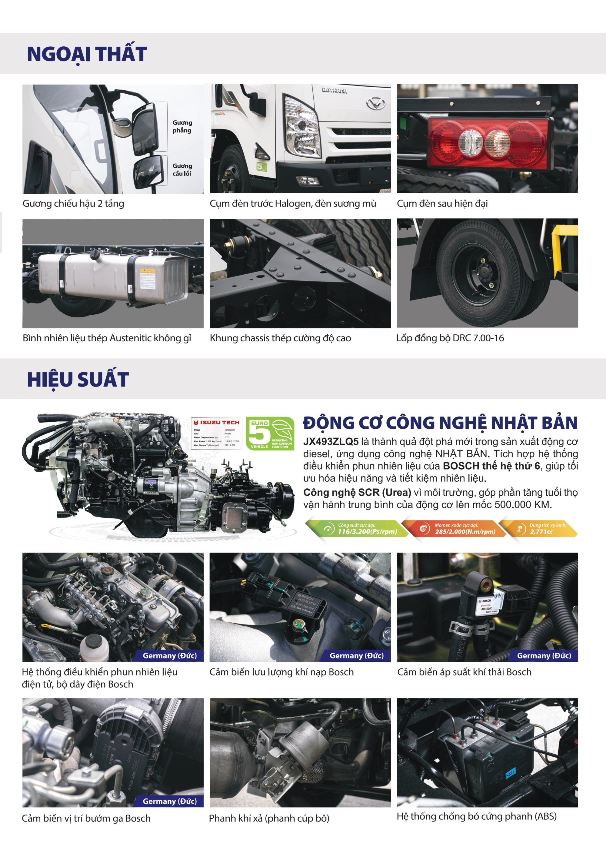 - ✅ Tiêu chuẩn khí thải Euro 5 – thân thiện với môi trường, phù hợp xu hướng vận tải xanh